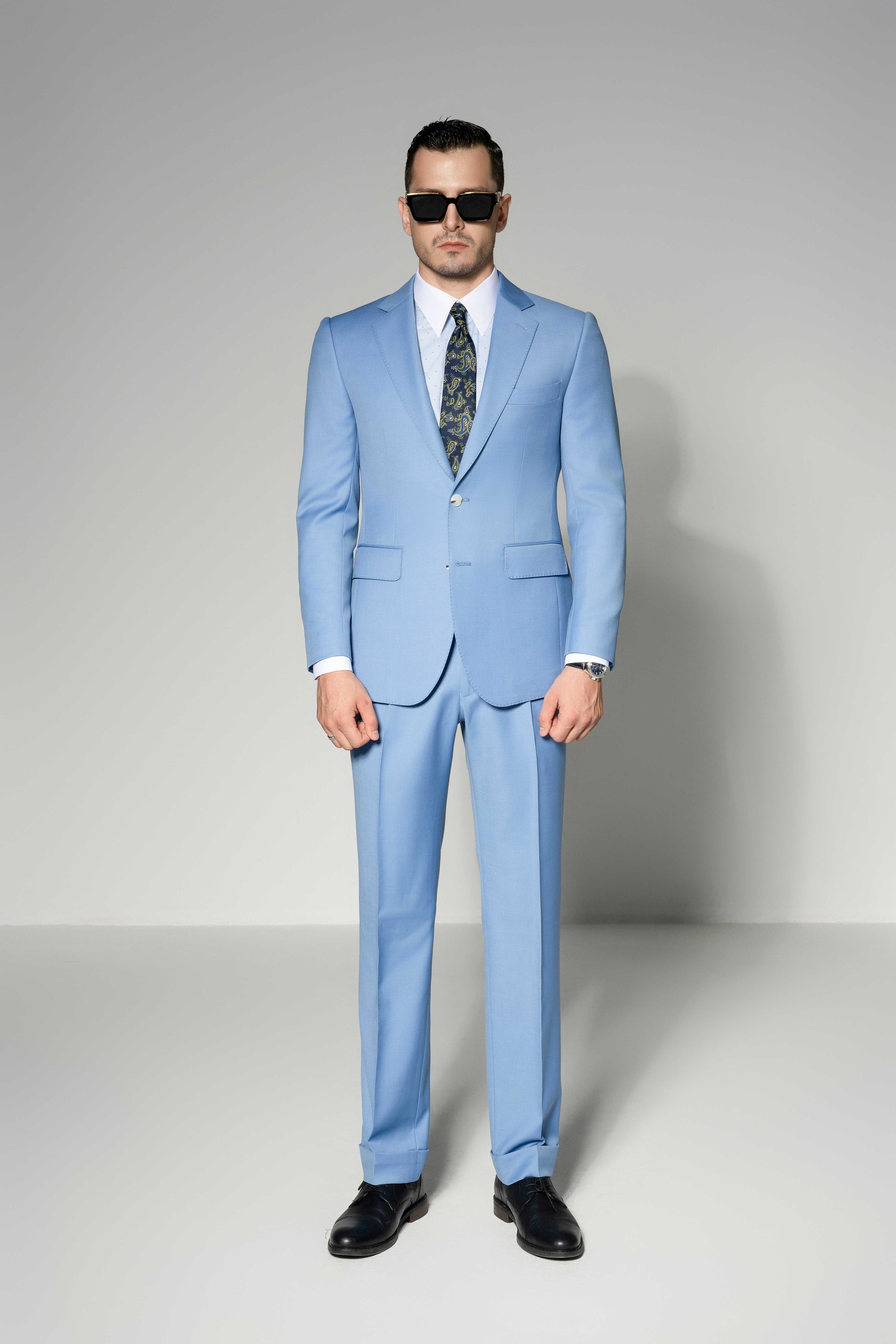- Chi tiết: Bộ vest màu xanh nhạt này toát lên vẻ tươi mới và thanh lịch hiện đại, rất phù hợp cho các sự kiện ban ngày hoặc dịp mùa hè. Gam màu nhẹ nhàng mang lại cảm giác trẻ trung và tinh tế cho tổng thể. Áo khoác ôm dáng giúp tôn lên vóc dáng lịch lãm, trong khi cà vạt họa tiết tạo điểm nhấn thời thượng và sáng tạo. Khi kết hợp cùng áo sơ mi trắng, bộ trang phục trở nên chỉn chu và tự tin. Cuối cùng, đôi giày da đen giúp cân bằng tổng thể, hoàn thiện hình ảnh quý ông hiện đại đầy phong thái.