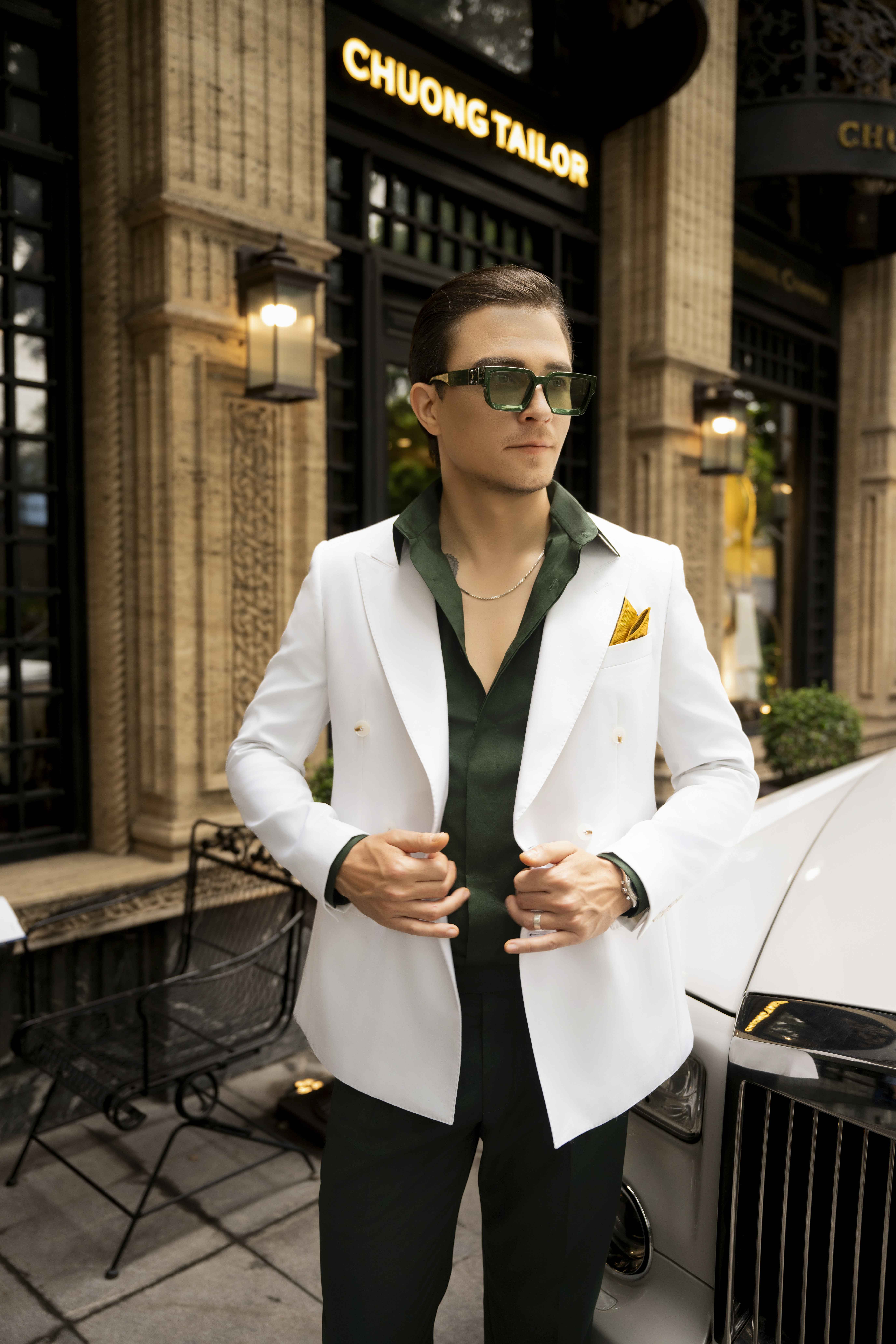 - Chi tiết: Bộ vest màu trắng hai hàng cúc toát lên vẻ sang trọng và tinh tế, là sự hòa quyện hoàn hảo giữa phong cách cổ điển và hiện đại. Áo khoác trắng tinh khôi nổi bật trên nền áo sơ mi xanh rêu đậm, tạo nên sự tương phản đầy cuốn hút và phong cách. Cà vạt họa tiết cùng khăn cài túi màu vàng ánh kim là điểm nhấn tinh tế, thể hiện gu thẩm mỹ và sự tự tin của người mặc. Phom dáng may đo chuẩn chỉnh giúp tôn lên vẻ nam tính và lịch lãm. Tổng thể bộ trang phục khắc họa hình ảnh quý ông hiện đại – thanh lịch, tự tin và đầy sức hút.