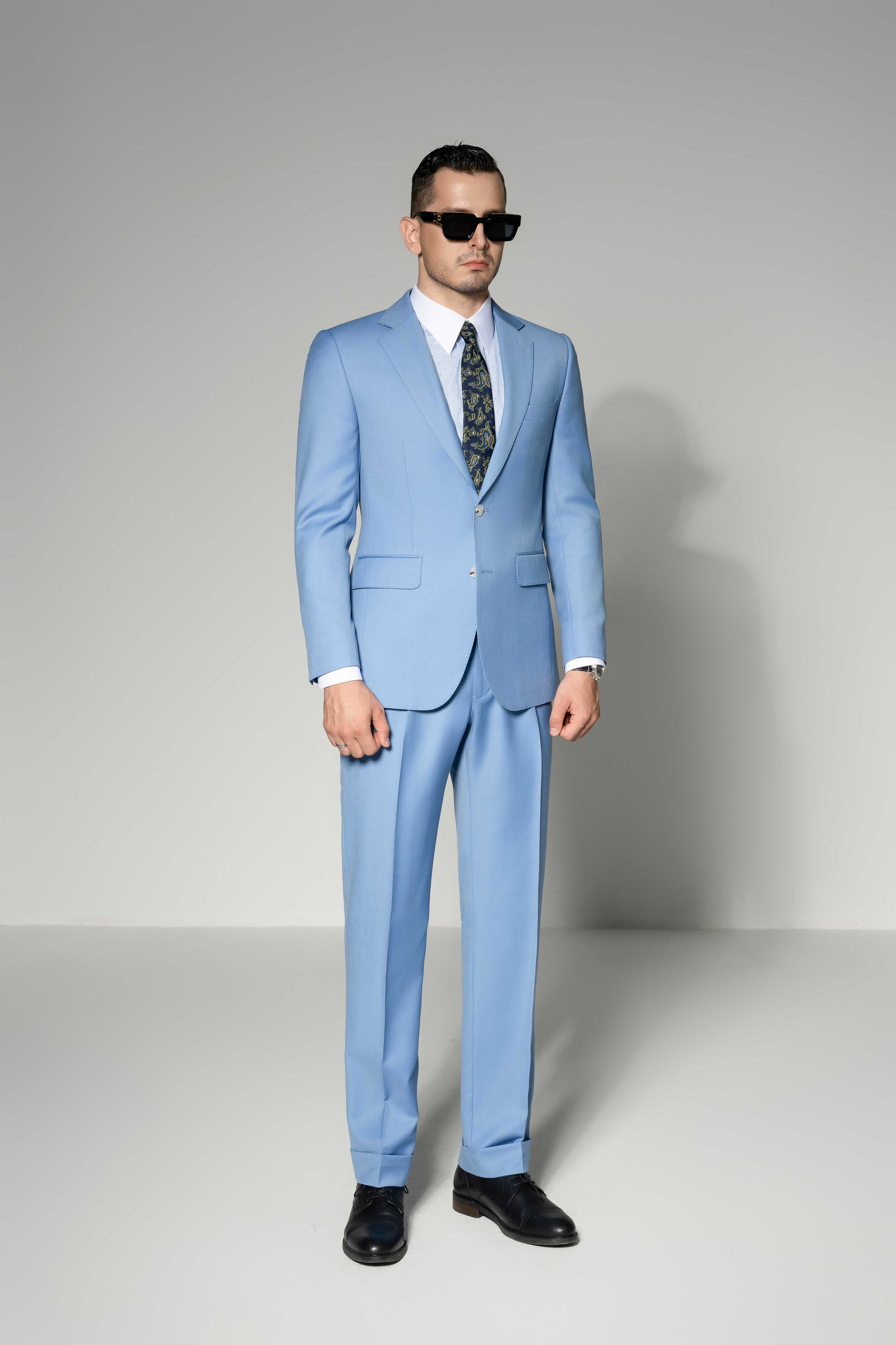 - Chi tiết: Bộ vest màu xanh nhạt này toát lên vẻ tươi mới và thanh lịch hiện đại, rất phù hợp cho các sự kiện ban ngày hoặc dịp mùa hè. Gam màu nhẹ nhàng mang lại cảm giác trẻ trung và tinh tế cho tổng thể. Áo khoác ôm dáng giúp tôn lên vóc dáng lịch lãm, trong khi cà vạt họa tiết tạo điểm nhấn thời thượng và sáng tạo. Khi kết hợp cùng áo sơ mi trắng, bộ trang phục trở nên chỉn chu và tự tin. Cuối cùng, đôi giày da đen giúp cân bằng tổng thể, hoàn thiện hình ảnh quý ông hiện đại đầy phong thái.