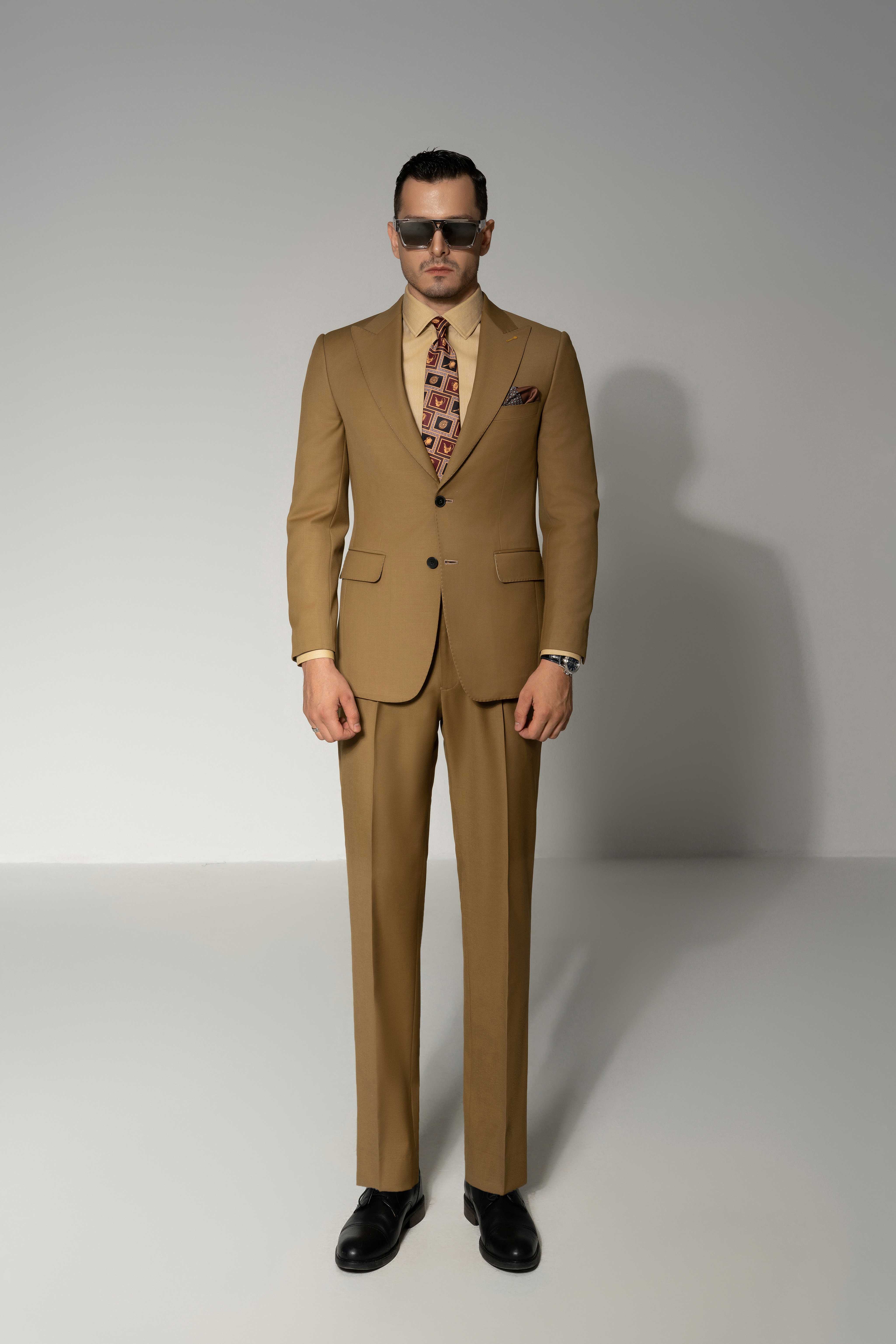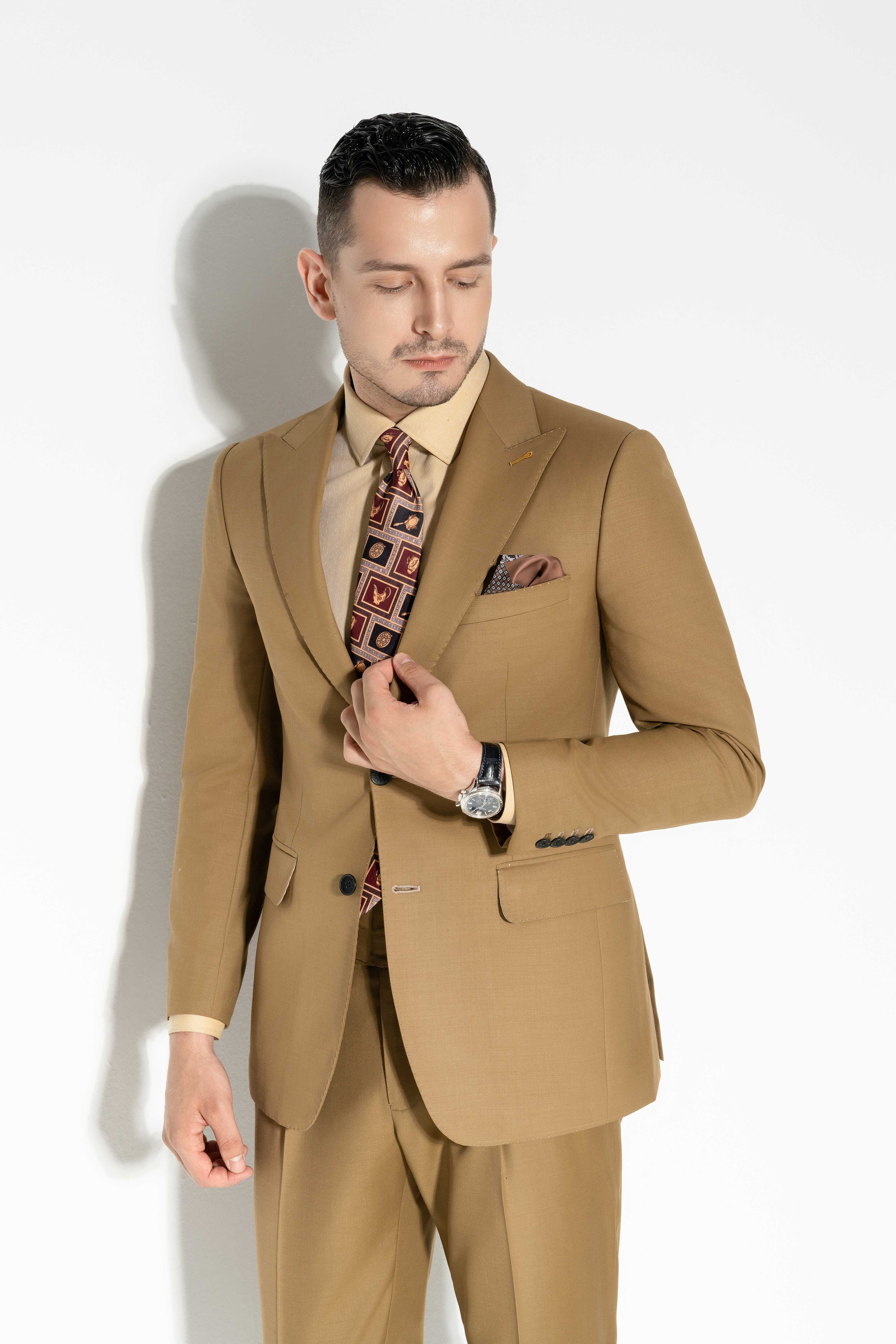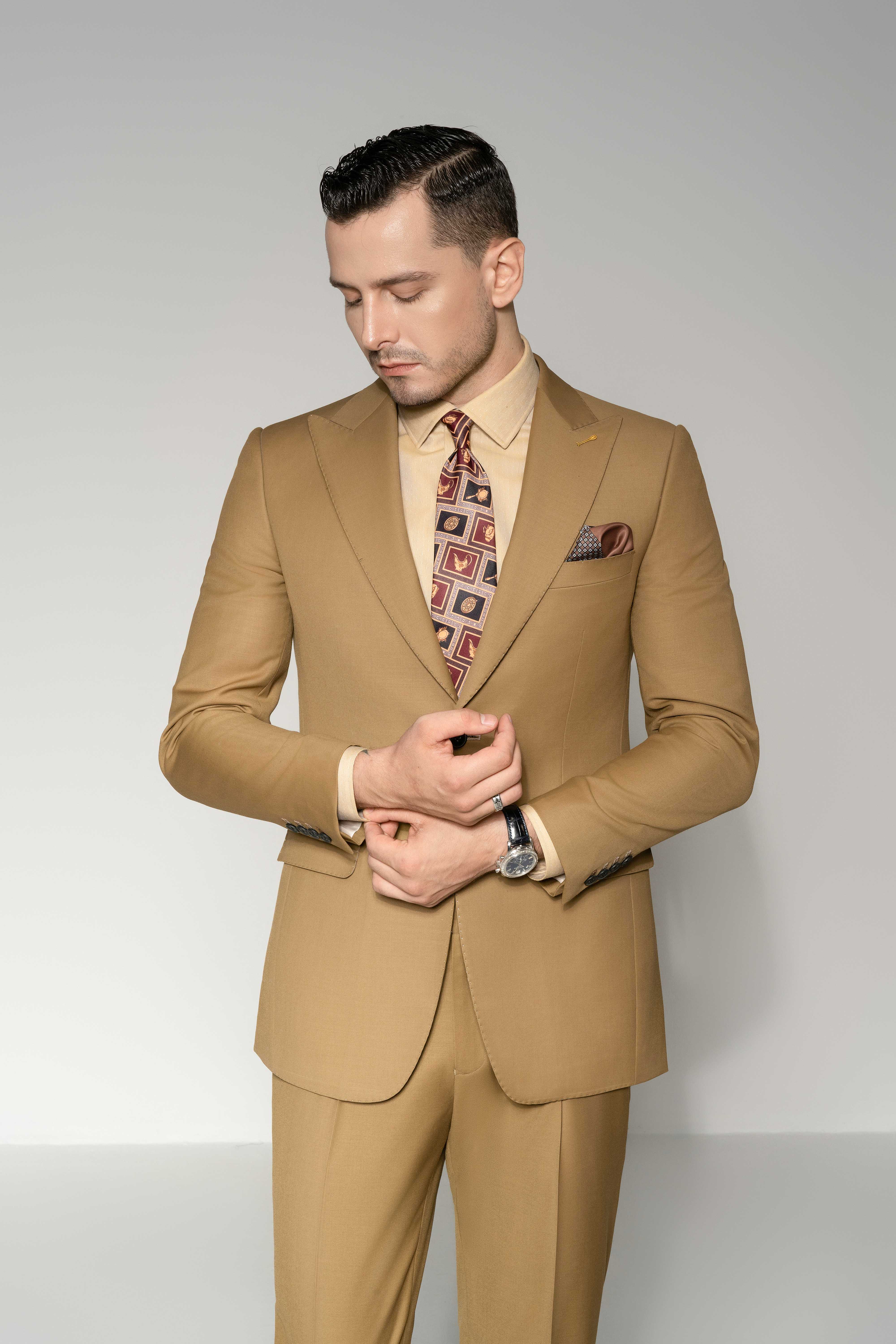 - Chi tiết: Bộ vest màu nâu camel toát lên vẻ ấm áp và sang trọng, hoàn hảo cho những quý ông yêu thích sự tinh tế pha chút cá tính. Áo khoác được may ôm dáng giúp tôn lên bờ vai và vòng eo, mang lại diện mạo thanh lịch và tự tin. Cà vạt họa tiết cùng khăn cài túi đồng điệu tạo điểm nhấn thời thượng và hài hòa. Áo sơ mi be nhạt kết hợp hoàn hảo với tông nâu, làm nổi bật sự cân đối và tinh tế. Cuối cùng, đôi giày da đen hoàn thiện tổng thể, thể hiện phong thái tự tin và phong cách hiện đại của quý ông.